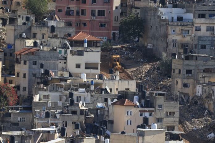 epa12550256 Israeli bulldozers open streets during a military operation at Nur Shams refugee camp near the West Bank city of Tulkarem, November 26, 2025. According to the Palestinian news agency Wafa, Israeli forces continued their military operation in the city of Tulkarem and the two camps for the 304th consecutive day [Alaa Badarneh/EPA]