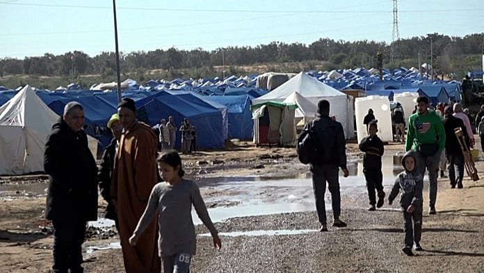 Severe floods in northern Morocco force over 150,000 to flee, with four dead and one missing as evacuees shelter in tents near Kenitra.
