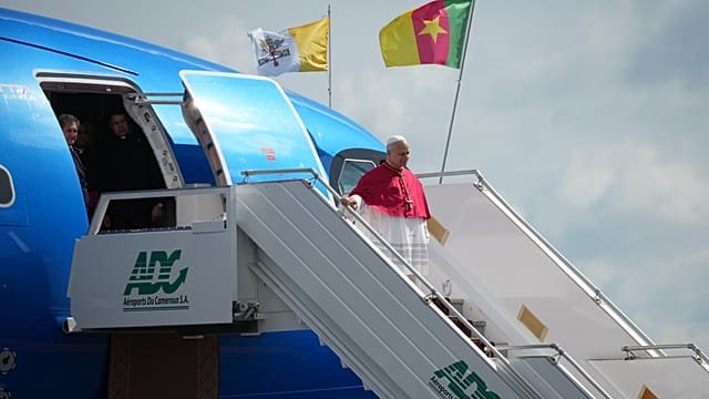 The 70-year-old pope will later visit a Catholic orphanage and hold a private meeting with Cameroonian bishops.