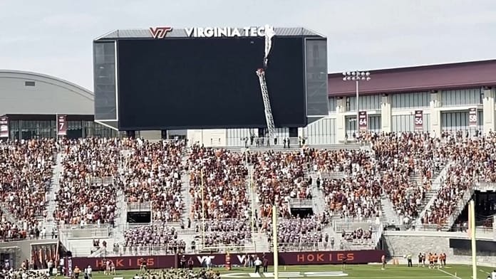 A skydiver crashed into the scoreboard at Lane Stadium in Blacksburg, Virginia, leaving him suspended mid-air. First responders rescued him within 30 minutes as the crowd watched. The incident delayed the spring football game, and the skydiver was reported to be in stable condition.
